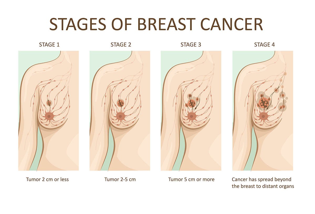 มะเร็งเต้านมระยะที่ 4 : เชื้อจะแพร่สู่อวัยวะอื่น ๆ ในร่างกาย เช่น สมอง กระดูก หรือปอด เป็นต้น ระยะนี้ก้อนเนื้อจะมีขนาดได้หลายขนาด